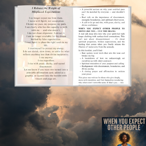 A real talk deep dive into why your spirit-led walk keeps clashing with surface-level connections. This isn't just about disappointment — it's about spiritual projection, broken expectations, and the healing that comes when you finally release the illusion of reciprocity from the unready. In this booklet, you'll find: This is a declaration. A reclamation. A healing ceremony written in fire, truth, and the voice of every version of you that once had to shrink to be loved, accepted, or protected. This isn’t just for the moments you stood tall — it’s for the moments you folded, fell, or forgot who you were… and still got back up. Every chapter in this body of work is a mirror. Every line is a key. Every ritual is a gate back to yourself. It was written for the spiritual warrior, the tired giver, the ones who’ve outgrown their past but still feel its echoes in their chest. For those who never got the apology, never got the closure, but decided to heal anyway